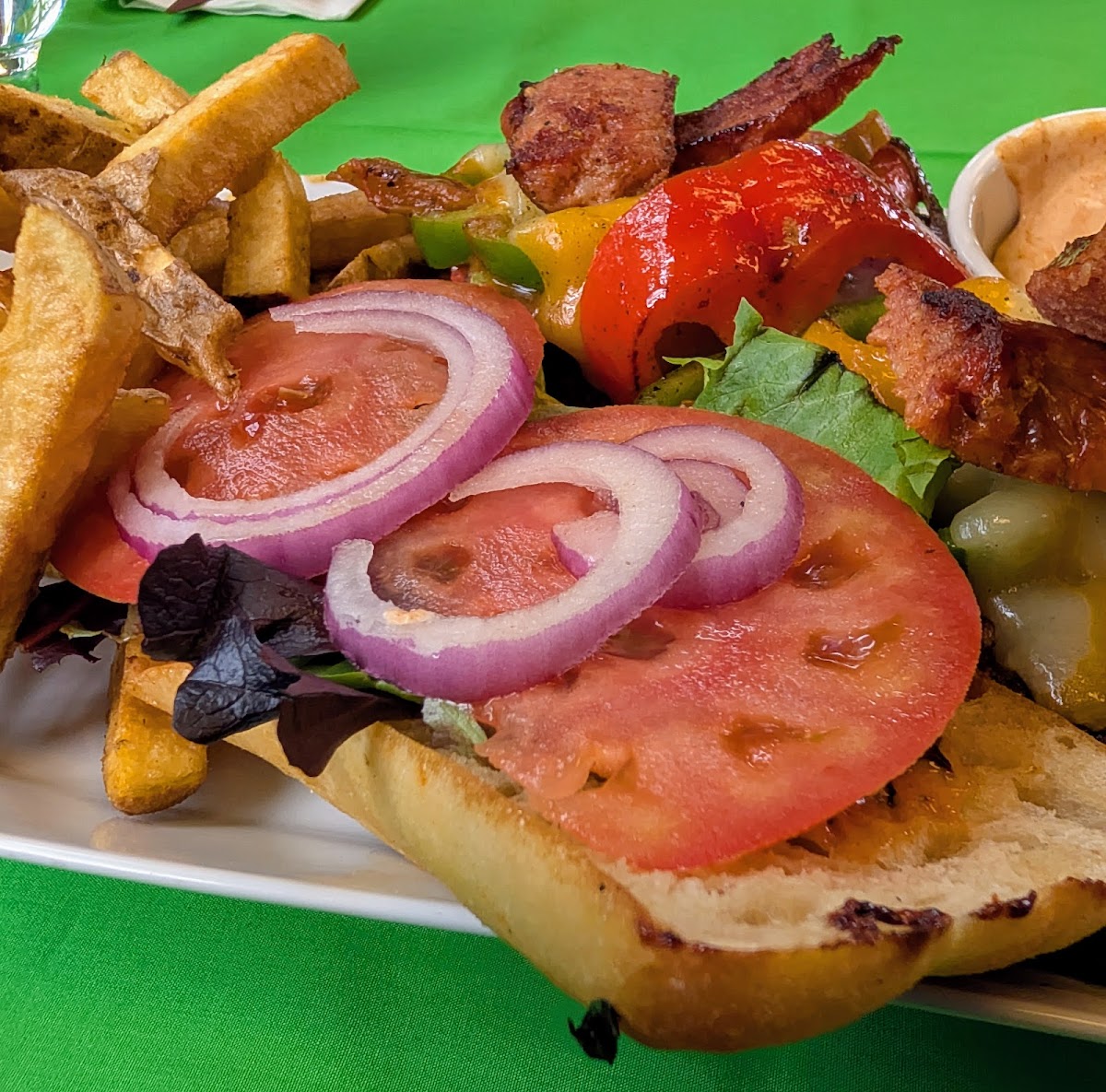 The restaurant takes pride in its extraordinary burgers, such as the colossal Mardi Gras Monster Burger, featuring two juicy patties, crispy bacon, and a delectable fried egg. And for a lighter option, the Mushroom Burger with Swiss or Cheddar cheese is a sure hit, complemented by freshly cooked grilled onions.